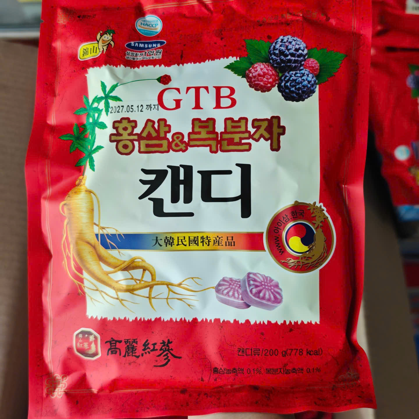 Kẹo Hồng Sâm Phúc Bồn Tử 200G Hàn Quốc